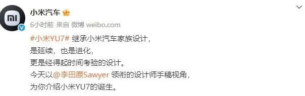 此前于6月9日,小米汽车发文,公布了小米YU7的设计手稿。小米汽车称,小米YU7继承小米汽车家族设计,是延续,也是进化,更是经得起时间考验的设计。